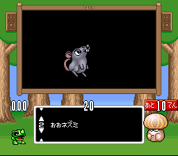 | 小サイズキャラに関しては判別が色くらいでしかできず、特にカミサマコースでは同じ色のキャラの判別はほぼ不可能である。カエルとけむし、カニとタコとヘビの判別は無理だと思っていい。 また、ネズミが茶色いのも罠だと言える(おおねずみは一般的な灰色なのでなおさら)。 キノコもモザイク当てでは何故か青く、ミニラに関しては普通は子供ゴジラのミニラしか浮かばない。 |